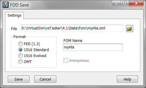 We will select 1516 FOM, give a name to the Federation and store it as an XML file in Data/Fom directory.