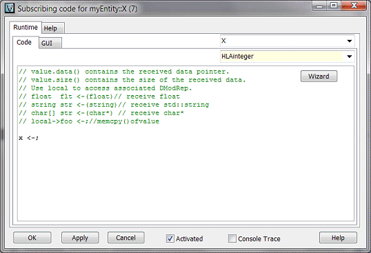 We will declare the two variables that will keep the data coming from the RTI, using the Declaration panel: