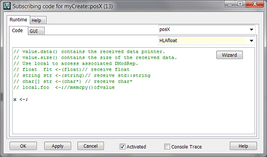 In the panel Declaration, let's define the two local variables that will hold the values coming from the RTI.