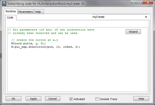 Now, in the myCreate Interaction code, let's use the (x,y) map coordinates to draw a red circle for 3 seconds.